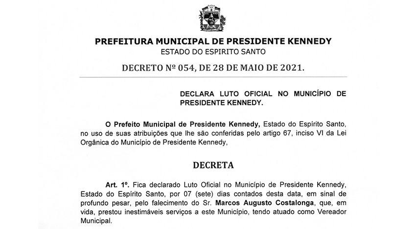 Rua: Átila Vivaqua, Nº 89 - Centro, Presidente Kennedy - ES, CEP: 29350-000
