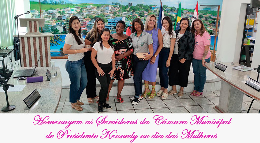 Por isso, gostaria de aproveitar este momento para prestar uma homenagem especial às servidoras da Câmara Municipal de Presidente Kennedy. Vocês são exemplos de força, determinação e dedicação, e têm contribuído muito para o funcionamento desta instituição e para o desenvolvimento de nossa cidade.
