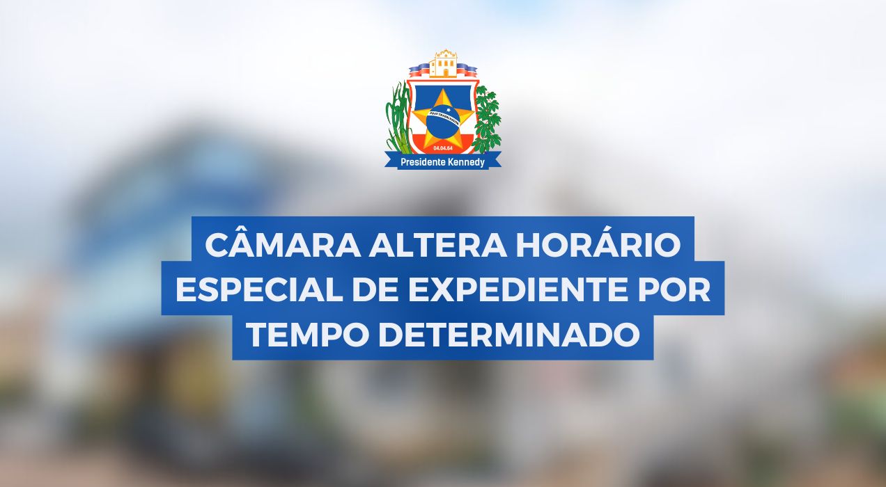 A Câmara Municipal de Presidente Kennedy comunica à população que o horário de expediente será alterado temporariamente. A partir do dia 10 de janeiro de 2025 até o dia 31 de janeiro de 2025, o atendimento ao público ocorrerá das 08:00h às 14:00h, de segunda a sexta-feira.